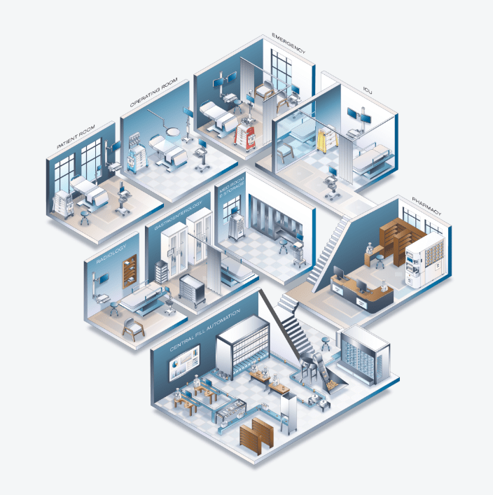 Alta eficiencia en equipos y procesos, que asegura una visión exacta de la situación de los pacientes y activos médicos.